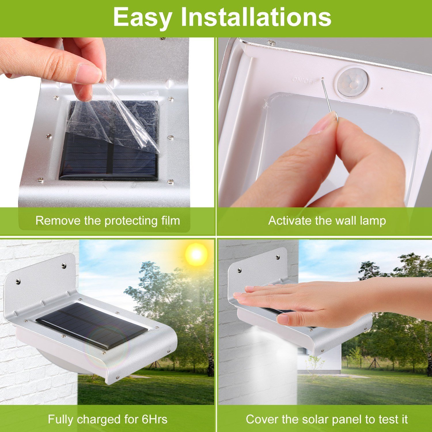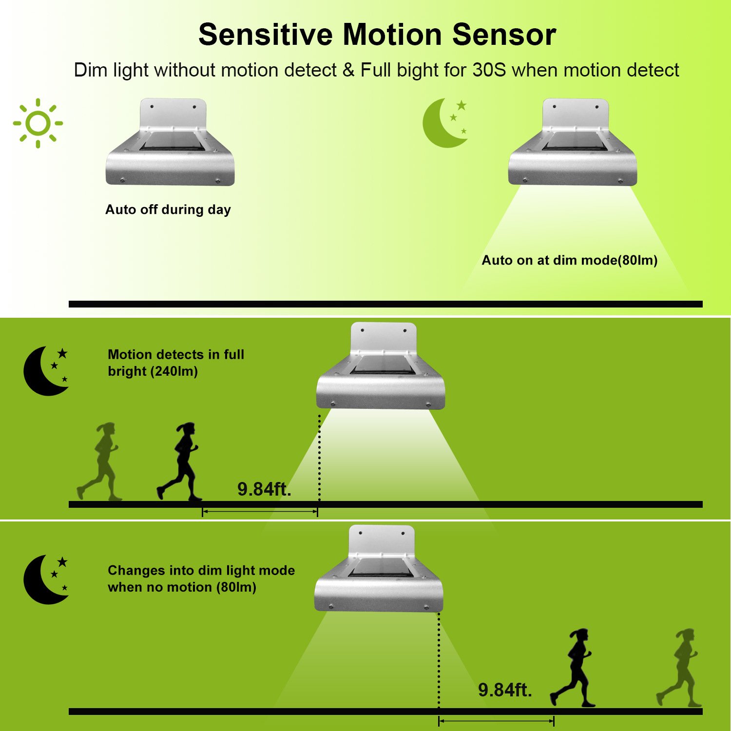 **UPGRADED INBUILT MOTION SENSOR*:Adopts advanced PIR motion sensor offers 120° wide sensing angle can detect motions up to 3m/9.84ft. The sensing range and sensitivity of our solar wall lights are both 20% higher than general LED lights,bringing ultimate using experience.